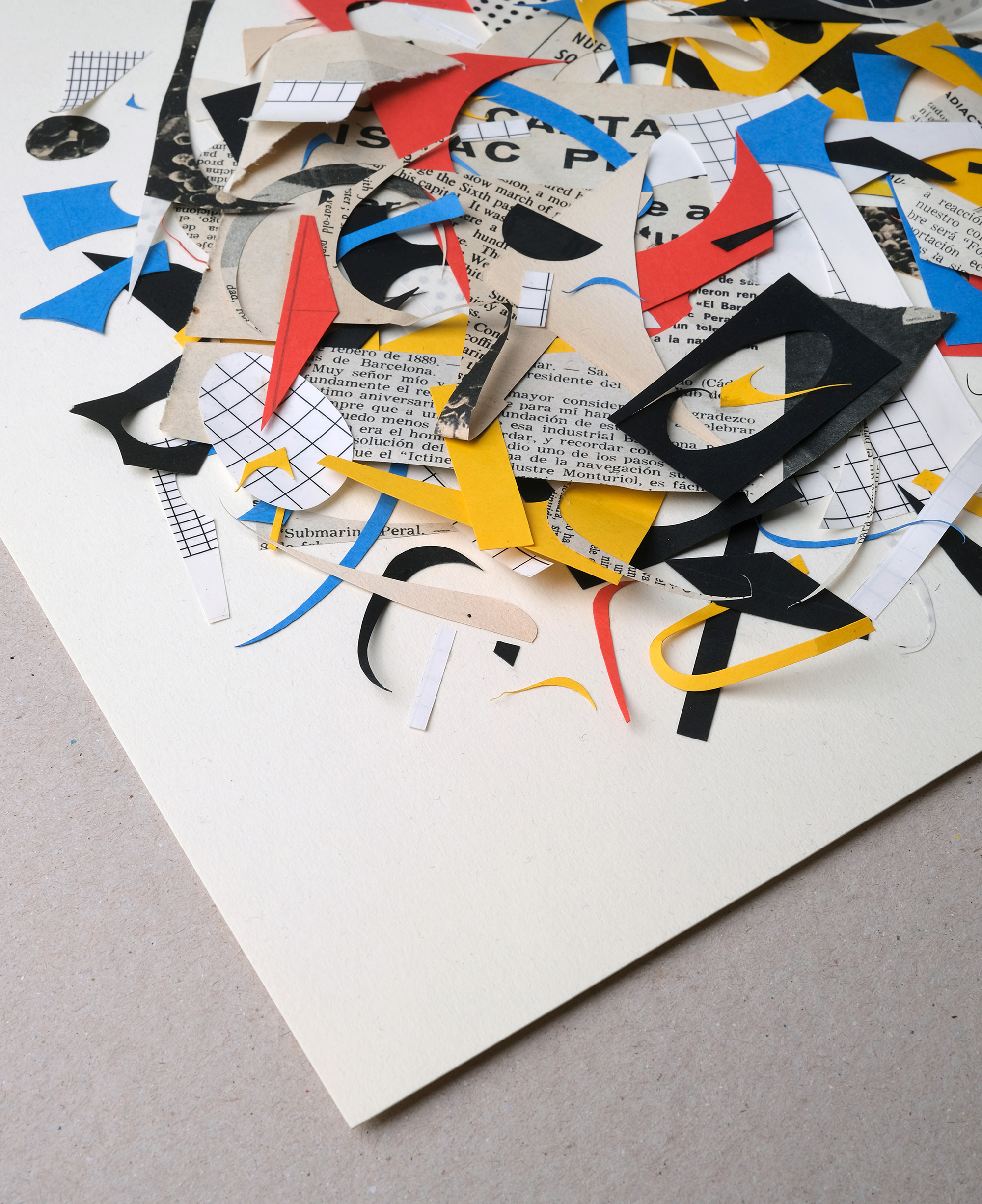 Pizzas. Collages made from scraps left over from other collages. The good thing about making things by hand is that, many times, these works generate interesting "waste" that you can reuse.